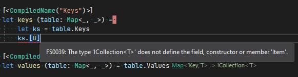 Notice the implementation of values in illib.fs returns a list and the public one an ICollection. The old code expecting a List would not compile if I didn't change it to seq.