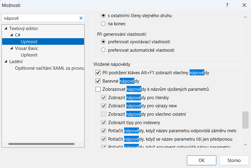 Note that VS is smart-ish in keyword processing, in that it doesn't require a full match, and IMO provides a good option search experience.