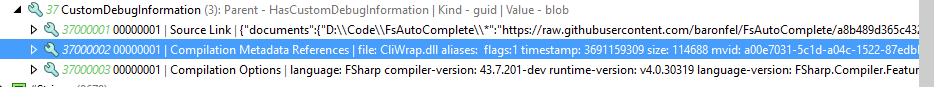 Test framework will probably also need to be extended, to check those: fsharp/tests/FSharp.Test.Utilities/Compiler.fs Lines 1210 to 1215 in 3d4eb5c Example for sequence points: fsharp/tests/FSharp.Test.Utilities/Compiler.fs Lines 1151 to 1161 in 3d4eb5c And import tables: fsharp/tests/FSharp.Test.Utilities/Compiler.fs Lines 1117 to 1149 in 3d4eb5c |
