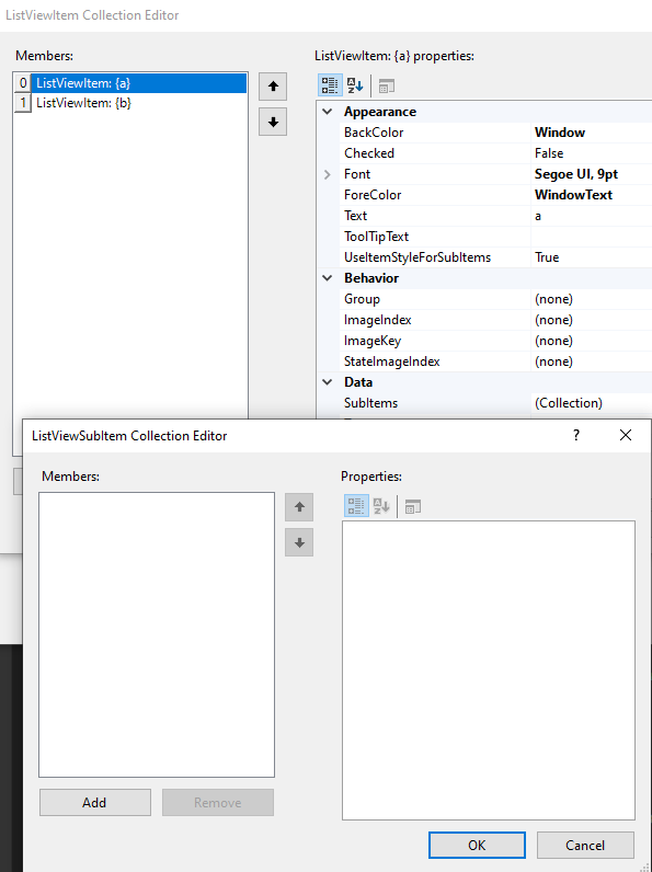 Porting System.Windows.Forms.Design.ListViewSubItemCollectionEditor#2198