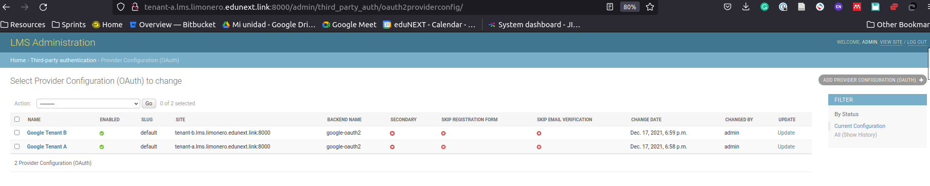 This PR allows us to create an Oauth2 configuration for each site with different backends, enabling multitenancy.