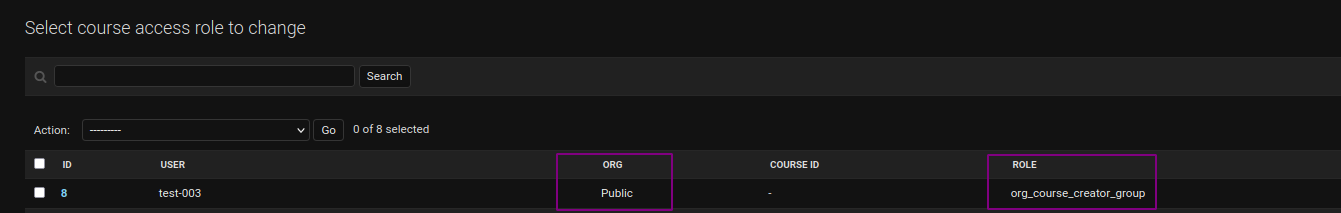 "COURSE_CREATOR_ADMIN_ID": "dummy-admin"Course access role (LMS)