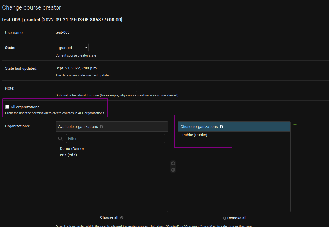 org_content_creator_role& course creator are created since adding an organization to a current course creator creates a role in the access roles table.OPEN_EDX_VISITOR_ORGReviewers: