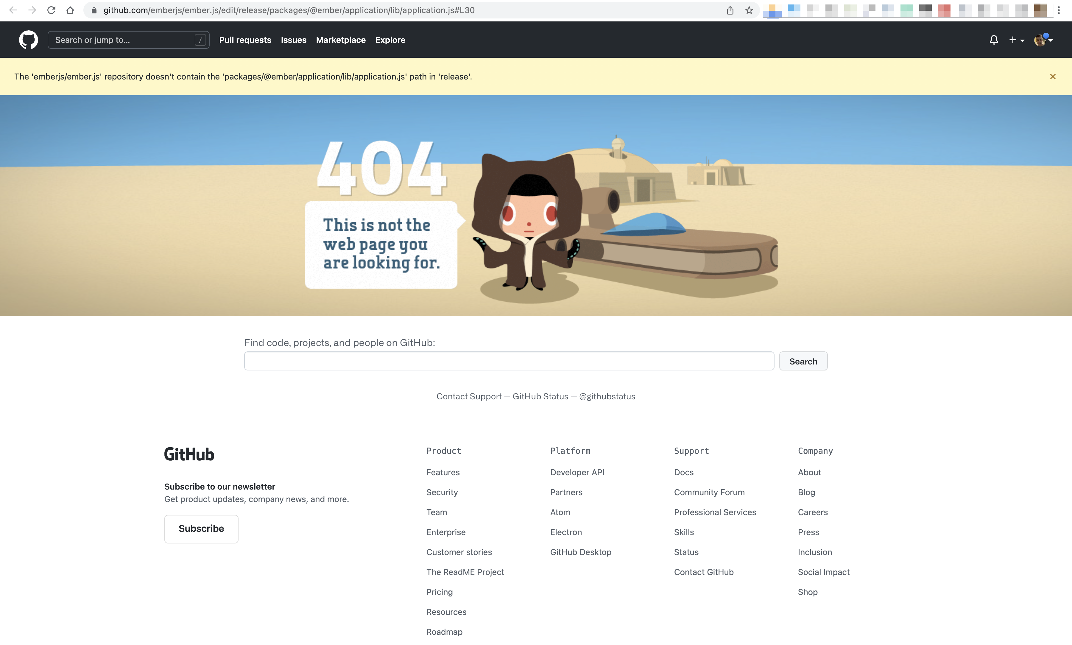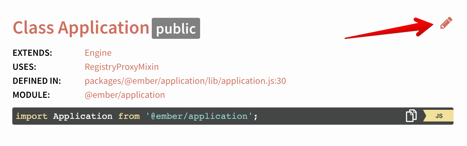 Strangely enough, when I click it now I see: Is this something that should be addressed as well? I see the link is pointing to maybe it should be changed this way? - https://github.com/emberjs/ember.js/edit/release/packages/@ember/application/lib/application.js