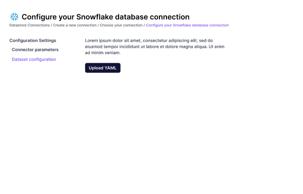 When configuring/setting up a connection to a database, you will have to upload a dataset yaml. This story covers providing that capability for db connectors.