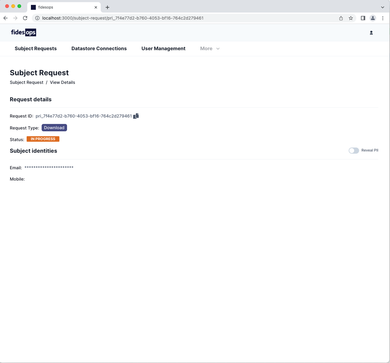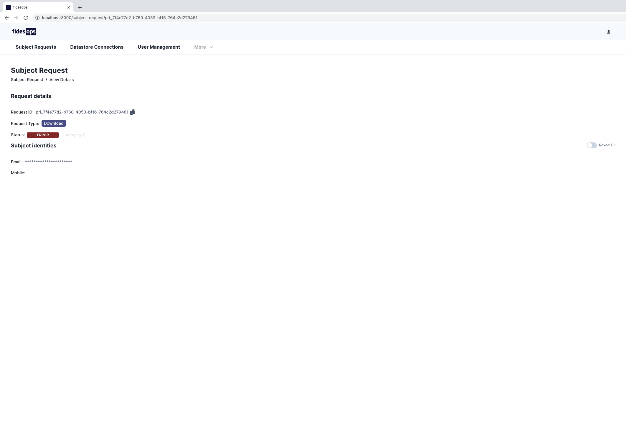 Demonstrate that a user can retry an ERRORED subject request from the UI