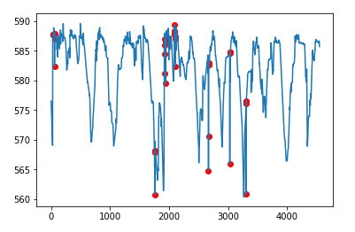 We are using a reservoir water levels to stimulate a water body where flooding is possible We are plotting the anomalies on elevation vs index graph (red dots represent anomaly)
