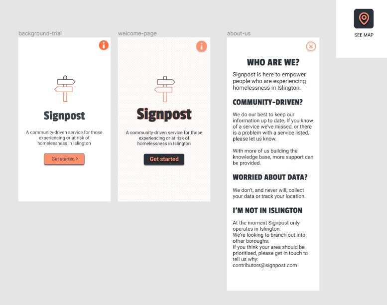 - We've designed our prototype with minimal use of personal data (just location, if consented to), no log in to avoid saving personal information, reassuring design and privacy statement available