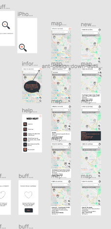 Mon/Tues: slow start: planning and researching. Lots of big initial blockers. Weds: trying to figure out how to build Express backend with React front end, also how to overwrite Git project Thurs: Lift off! Move Google Maps call to front end, stick with Express for AirTable. Connected pages by using React Router Fri: Displayed markers by accessing dummy data - made improvements with making a connection between both our map API and our airtable API - made initial style for main pages - added all of necessary svg icons - rendered the components in App by passing their states too so they can be updated/accessed where needed.