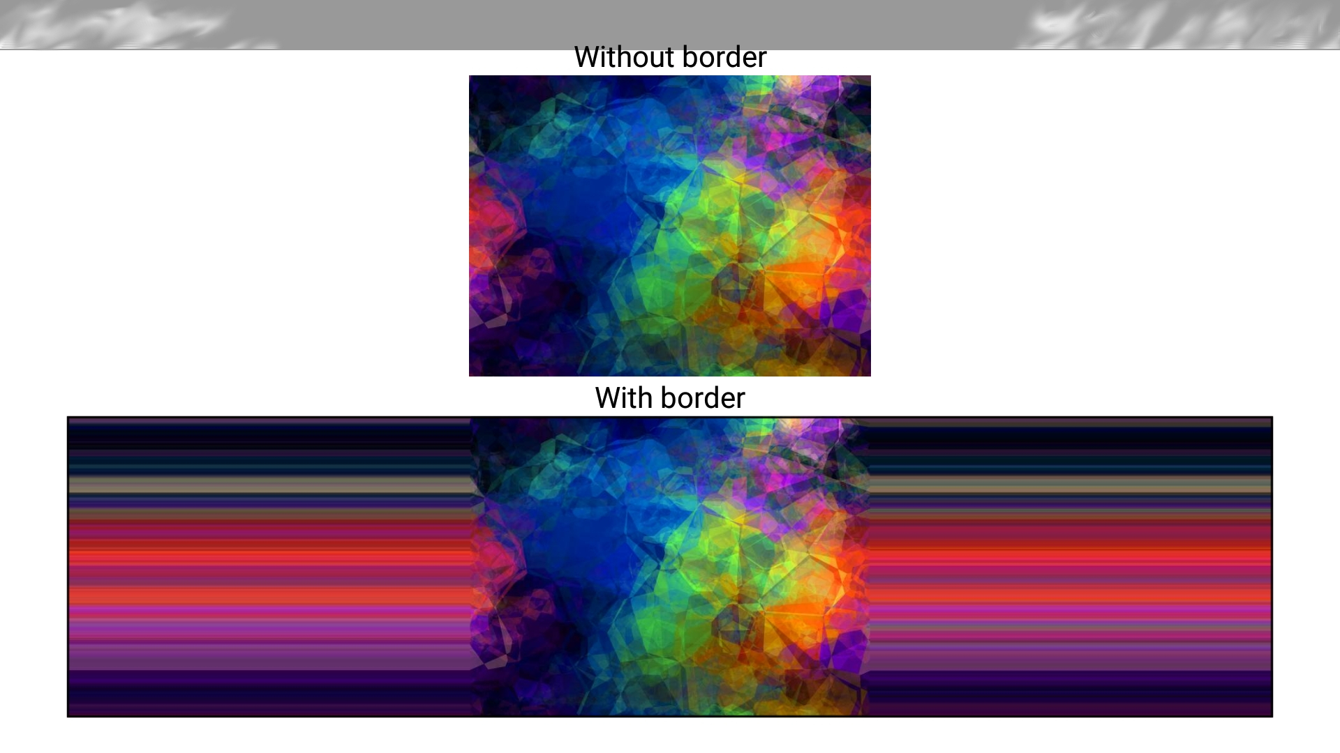 The image with the border takes all the possible width, and is weirdly stretched ! If you don't see it properly, try in landscape mode !