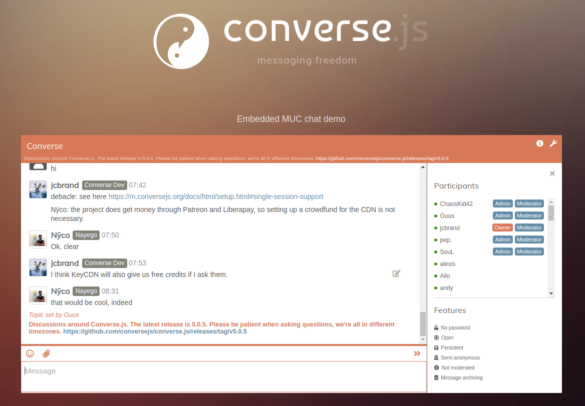 Converse is hosted and can be used at https://conversejs.org.