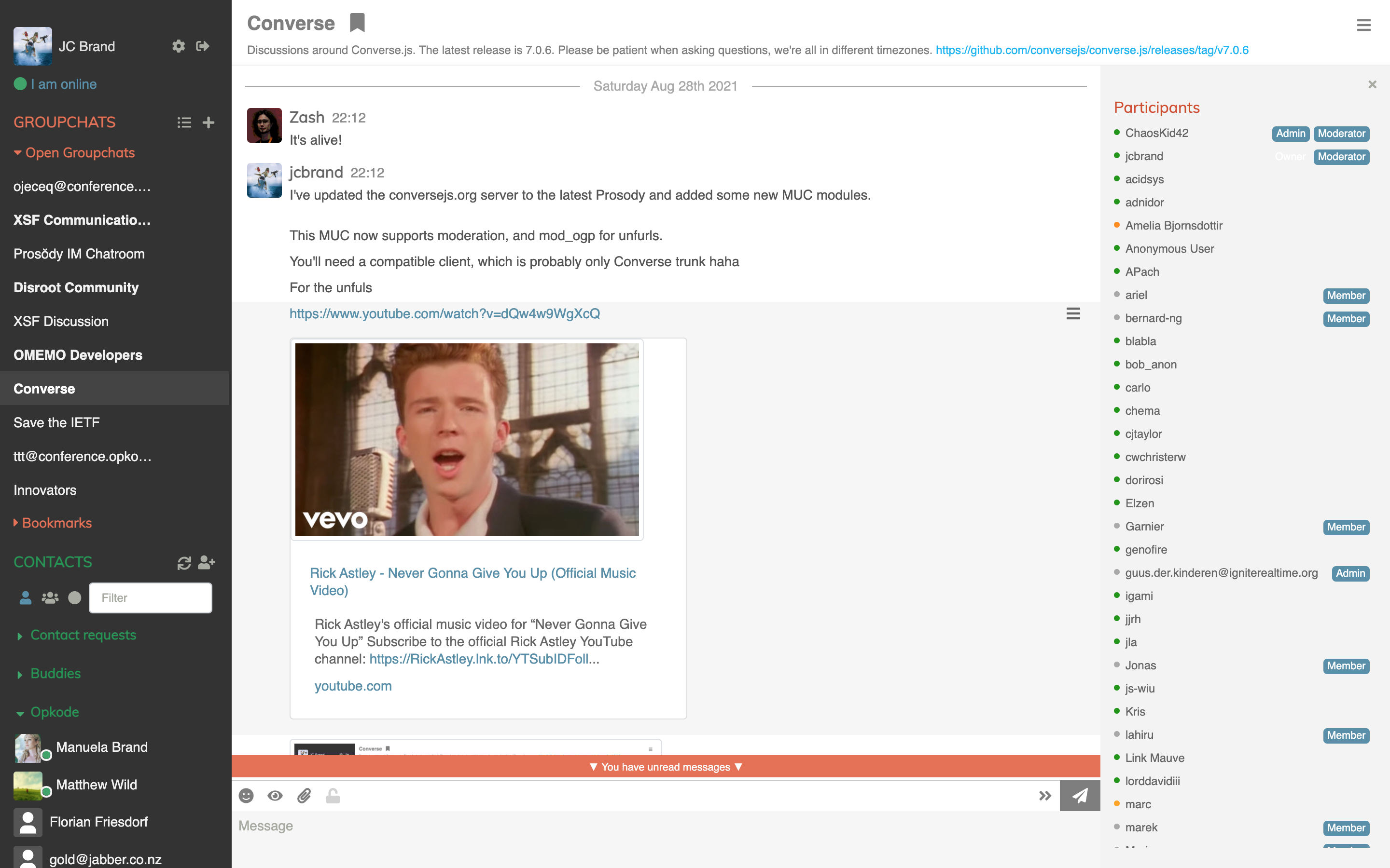 Converse is a web based XMPP/Jabber chat client.