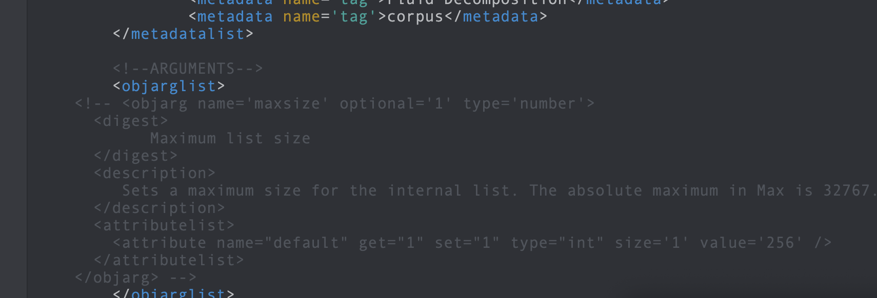It'll be worth comparing mine and your XMLs for this file too: e.g. I have some docs for the list method and, more stuff in the description for the various bits
