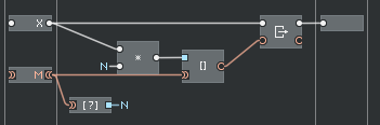 The fundamental building block of the library is a Phase Driver: a ramp waveform generator that represents a musical period, which could be for example two measures long. The Phase Driver is based on a simple phase accumulator that increments every audio clock and wraps back to 0 when it reaches 1. Additional blocks can subdivide this cycle into smaller periods, which can be quantised and used to look up tables of values for parameter modulation or note data. The output of the ramp generator can be modified using a waveshaper to achieve different grooves or more complex rhythmic patterns. It can also function as an audio-rate oscillator by using a further waveshaper to create different wave-forms or by using it to read samples from a wavetable using the Sample Reader described later in this section. If wrapping is disabled, ramps can be triggered in oneshot mode to drive sample playback or be used as envelopes if followed by a function generator or another waveshaper.
