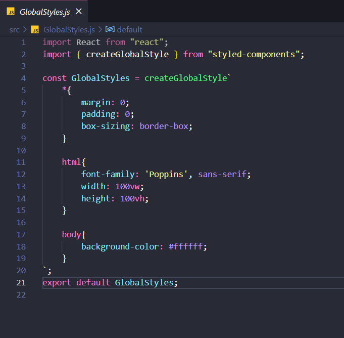 Criei um Global Styled Components para zerar o HTML e instalar uma fonte padrão: Poppins