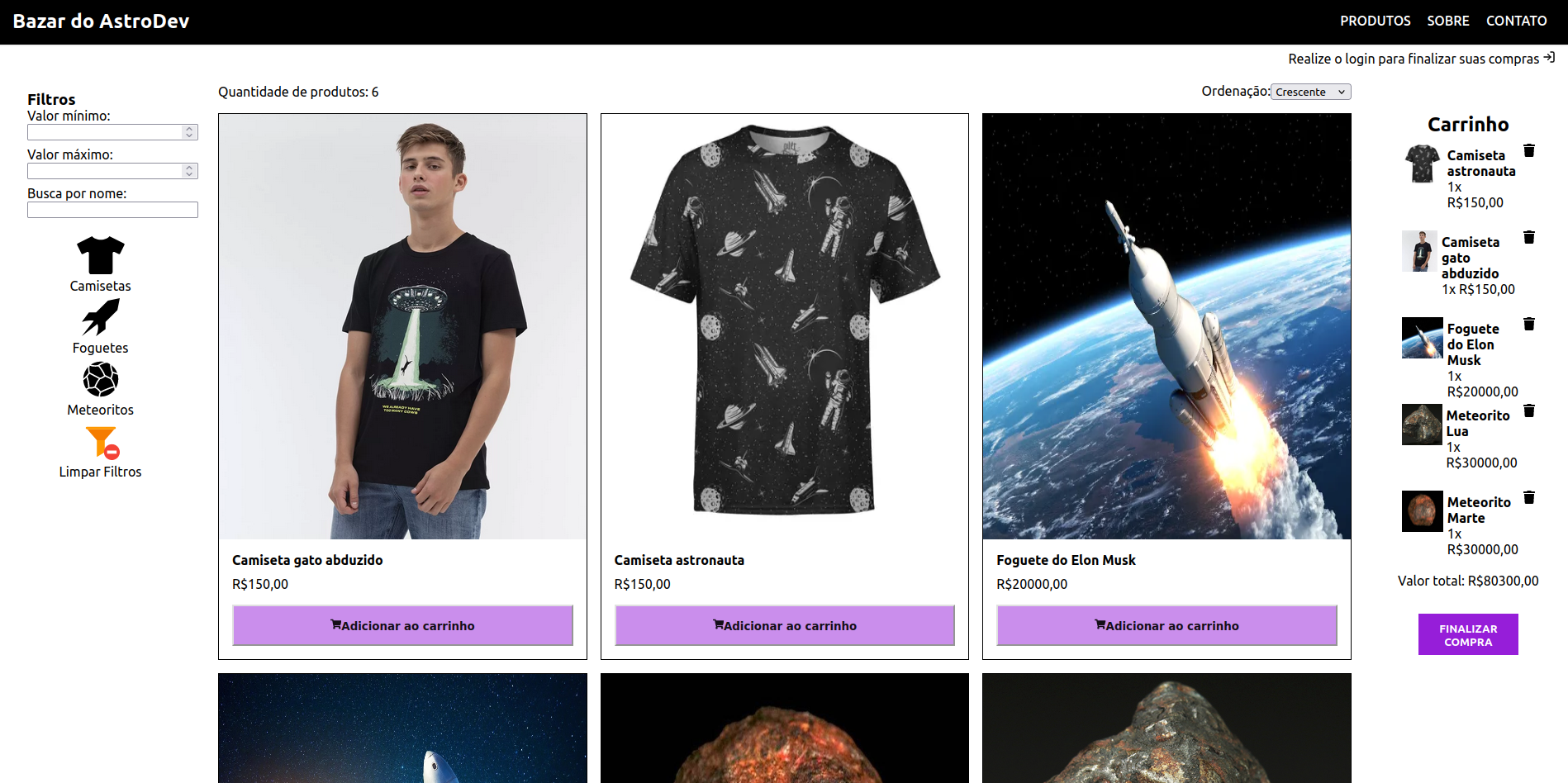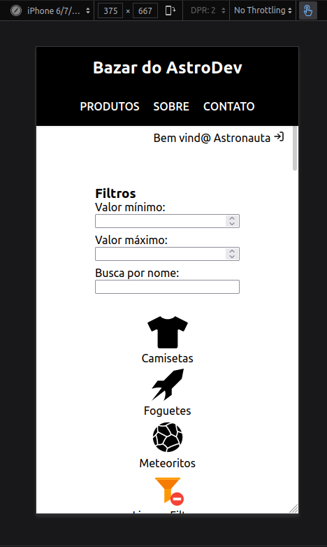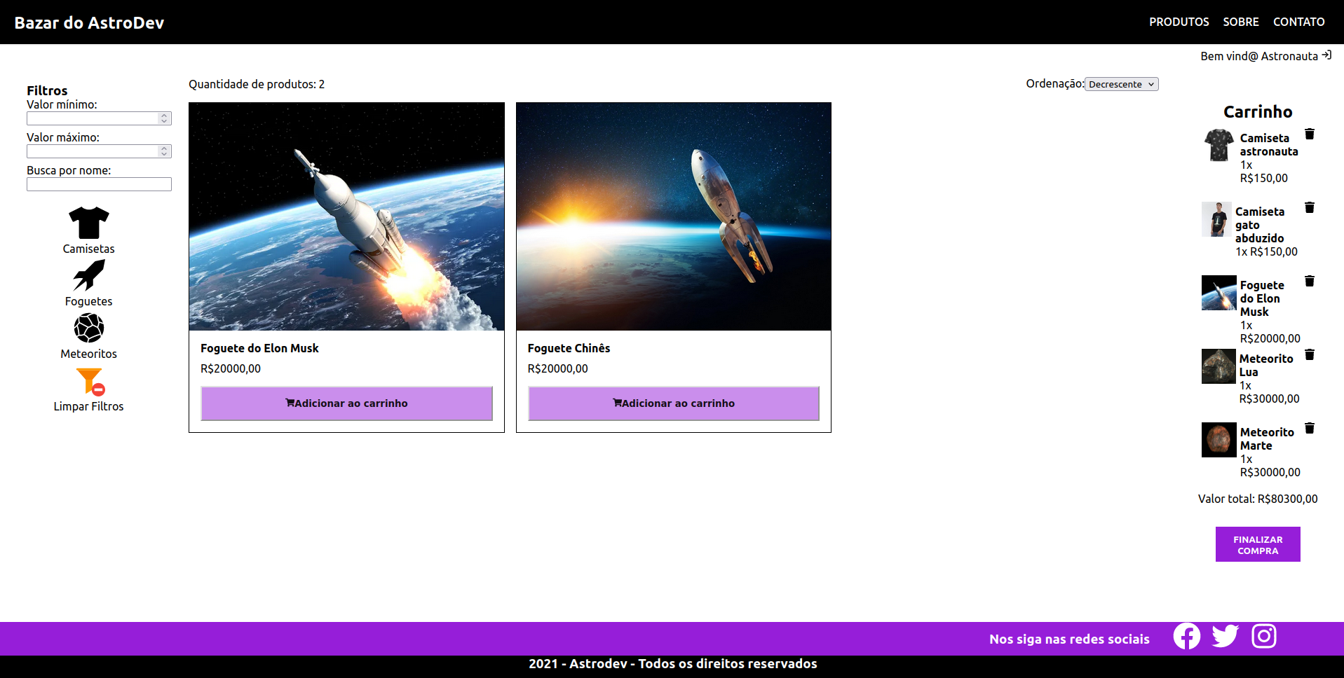 - Filtro por preço máximo e mínimo, nome e categoria;