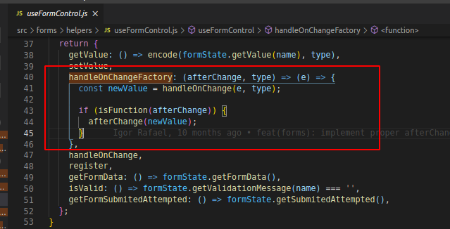 @joaoassisb e @nerissa-aguirre, uma sugestão de vcs era usar a lógica do handleOnChangeFactory que vem do useFormControl para executar o afterChange, no entanto, a implementação atual de handleOnChangeFactory requer um evento. Como esse novo componente não emite um evento ao mudar, recebo um erro ao tentar usar ohandleOnChangeFactory. Uma maneira seria adaptar o handleOnChangeFactory pra lidar com esse caso, mas por enquanto achei mais simples deixar assim, que é a forma como está implementado no componente <FormAutocomplete/> também