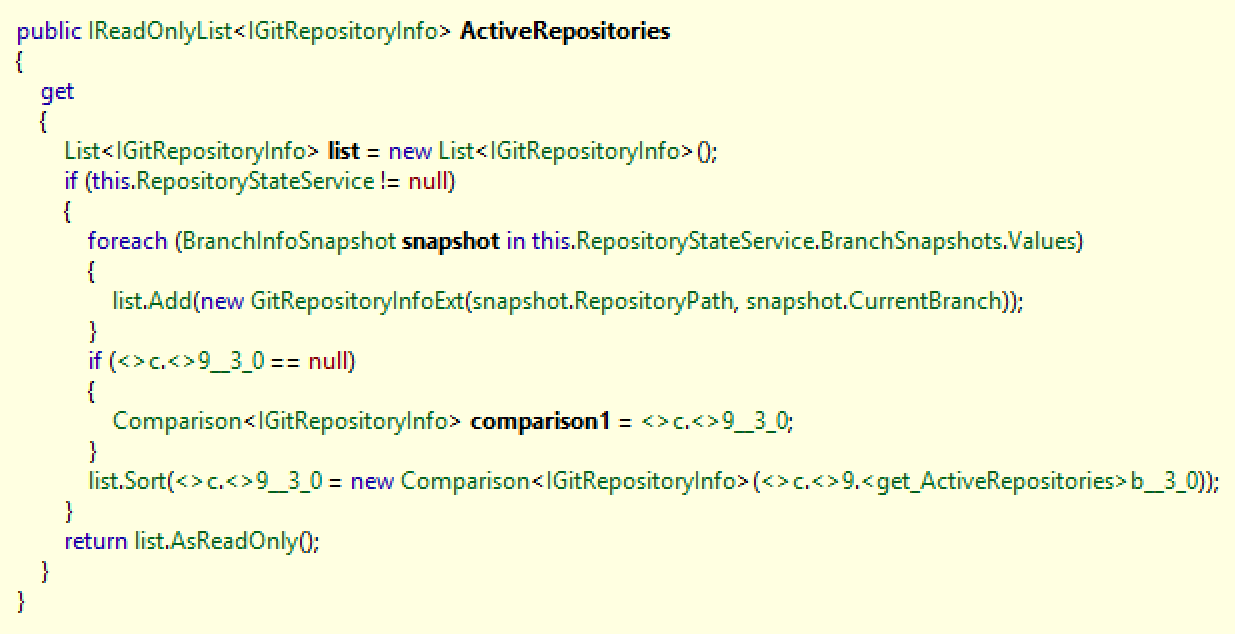 | vsGitExt.ActiveRepositoriesChanged += ActiveRepositoriesChanged; | ||