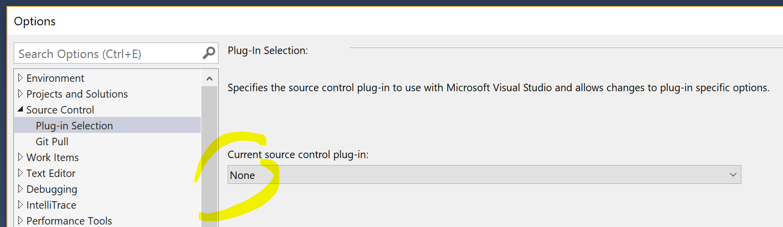 Tools > Options...and setCurrent source control plug-intoNone.Clone or check out code > GitHubClonea repositoryTo do