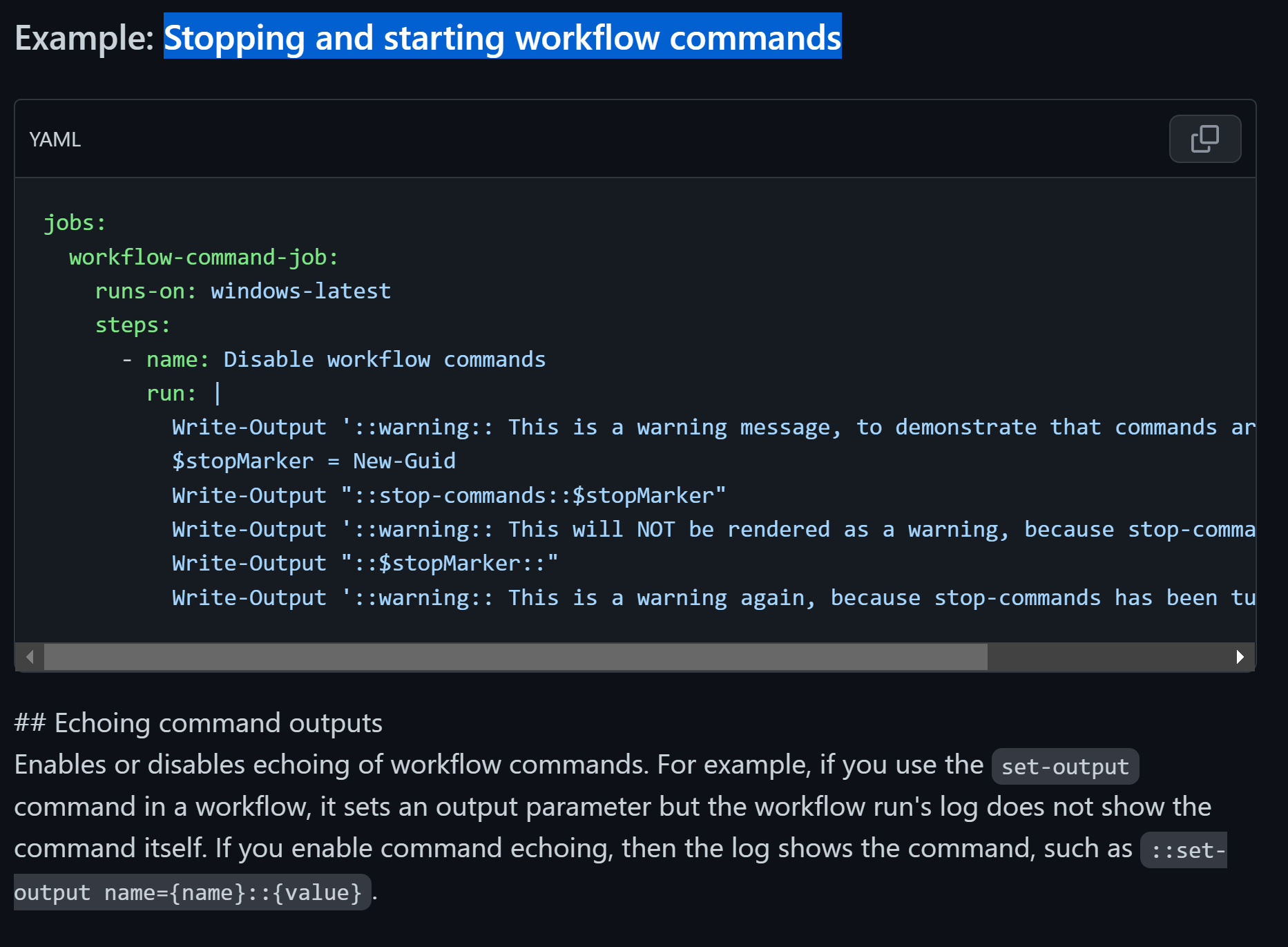 Changes are now live: https://docs.github.com/en/actions/using-workflows/workflow-commands-for-github-actions ⚡ |