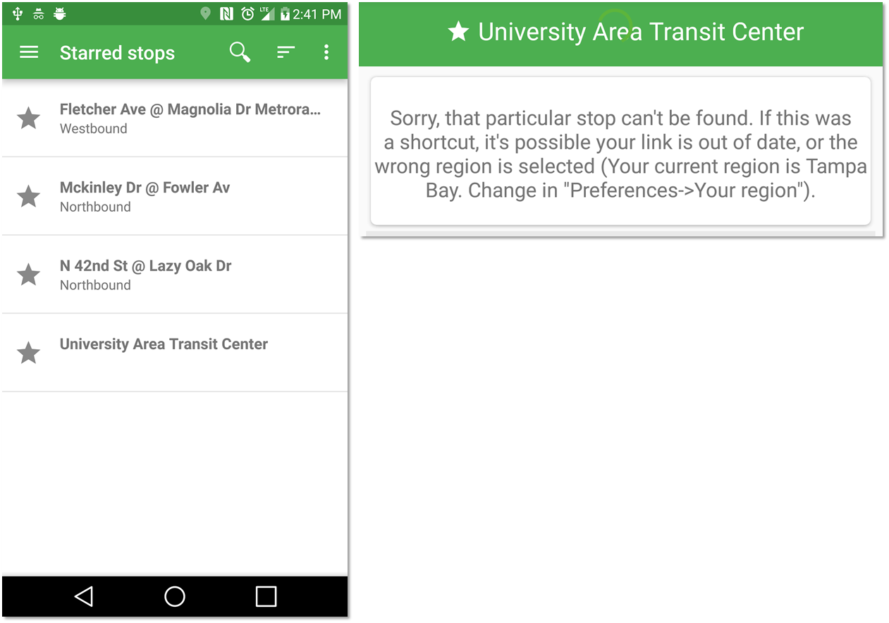 For 1), we allow users to bookmark stops in the mobile app and use stop_id as the key to identify the stop. If the agency changes the stop_id, it breaks that bookmark, and as a result stop_ids that refer to the "same stop" from a riders perspective should retain the same stop_id: For 2), we allow users to set recurring reminders for when their bus will arrive on a particular route at a particular stop, based on real-time information. We currently use a trip_id, but this breaks when the schedule is updated and trip_ids change. In a perfect world trip_id would be stable as well, but I know there are more challenges here. It's on my TODO list to improve this to survive GTFS updates, which would include using route_id and trip_headsign (see below). Changes to stop_id also breaks this feature, so again, stop_id should be stable. For 3), bookmarking favorite routes (including at stops), we allow users to pin arrivals for particular routes to the top of the list, either for all stops or at certain stops. Because of changing trip IDs (we learned from 2) above as this feature was implemented later), for this feature we use a combination of route_id and trip_headsign, and stop_id if the user chooses a particular stop. If the route_id and trip_headsign (and stop_id if used) change, this obviously breaks the favorite. So route_id and stop_id should also be stable. Ideally trip_headsign would also be stable when representing the same overall information, but again this is more complicated. |