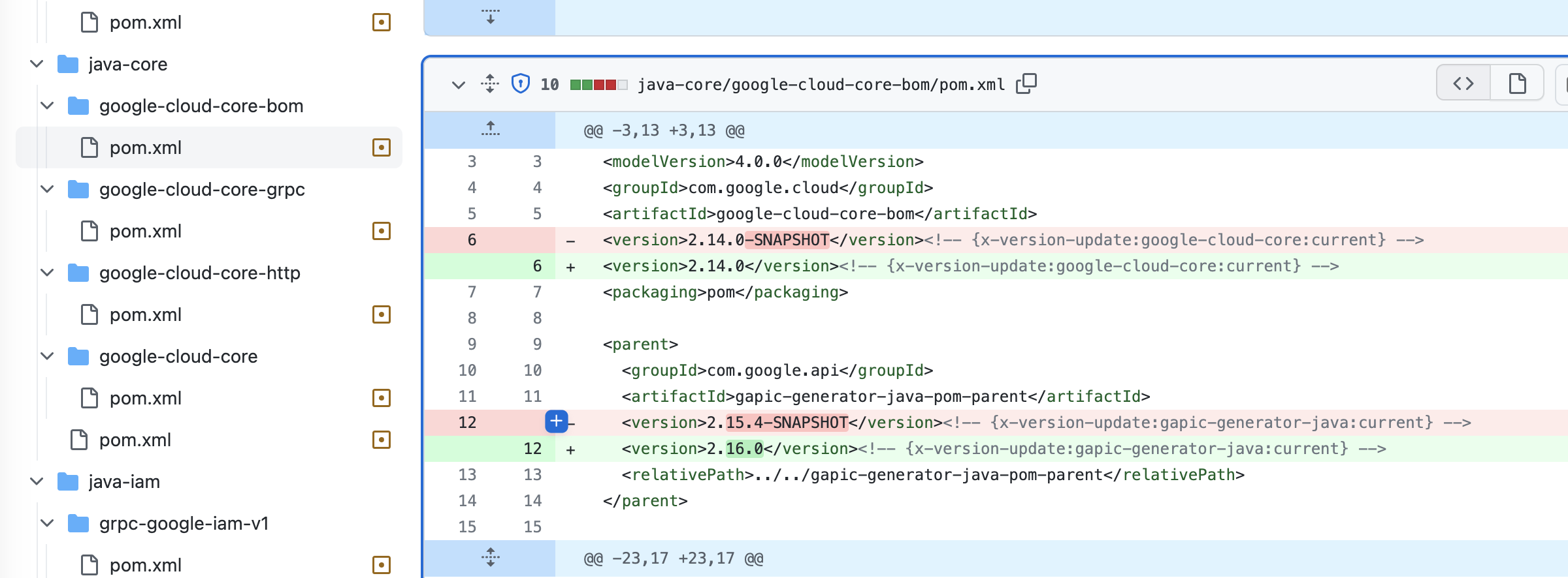 Done. https://github.com/googleapis/gapic-generator-java/pull/1511/files is showing: For java-core: |