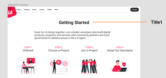 Complexity: SmallTake this type of issues after the successful merge of your second good first issueTake this type of issues after the successful merge of your second good first issueFeature: Design systemP-Feature: Getting Startedhttps://www.hackforla.org/getting-startedhttps://www.hackforla.org/getting-startedrole: front endTasks for front end developersTasks for front end developerssize: missing