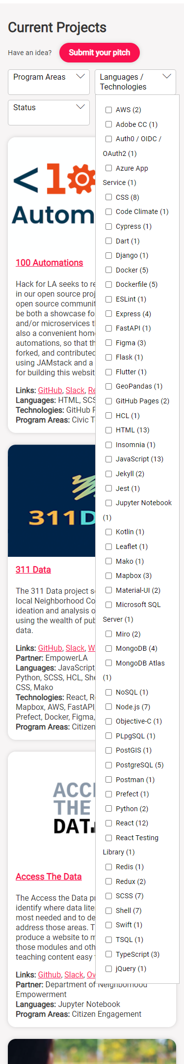 Click here to see the proposed projects page `Languages / Technologies` dropdown Figma designs for desktop and mobile (after changes)