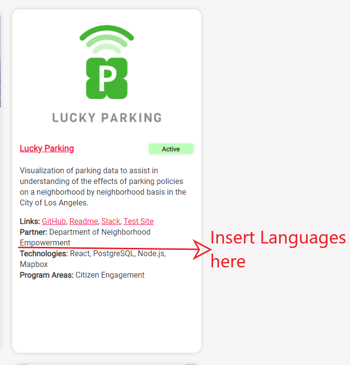 - In the projects page, update each project page card so the languages are listed