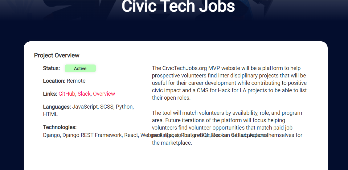 - Review the Civic Tech Jobs project page