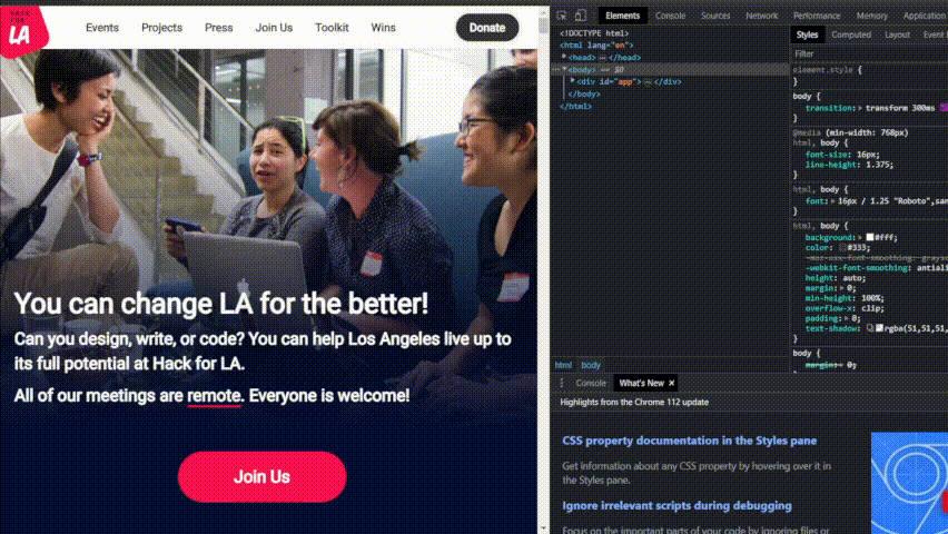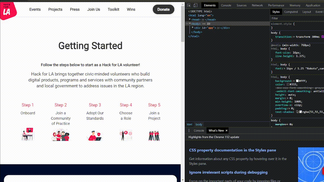 This bug can be seen from any page on the Hack for LA website and may affect the layout of other elements on certain pages.