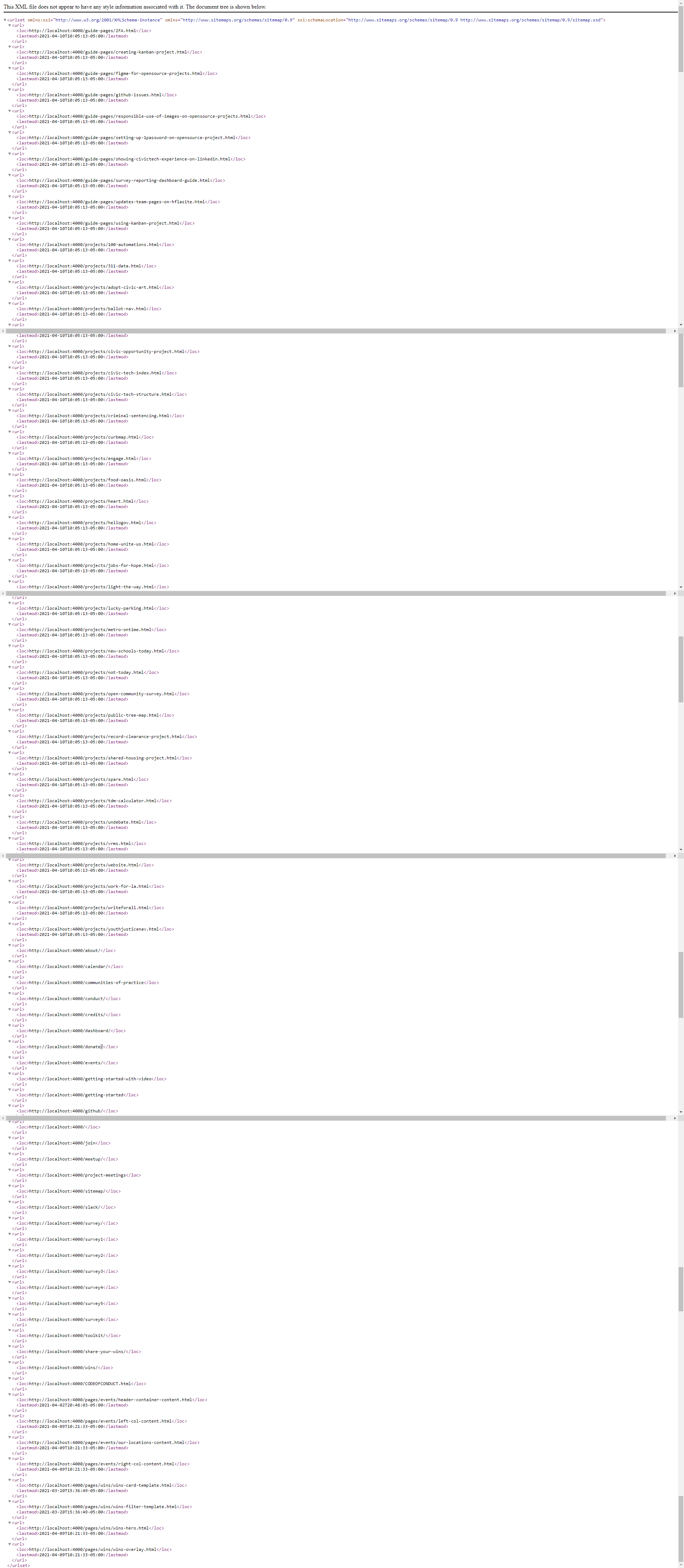 Screenshot of generated sitemap