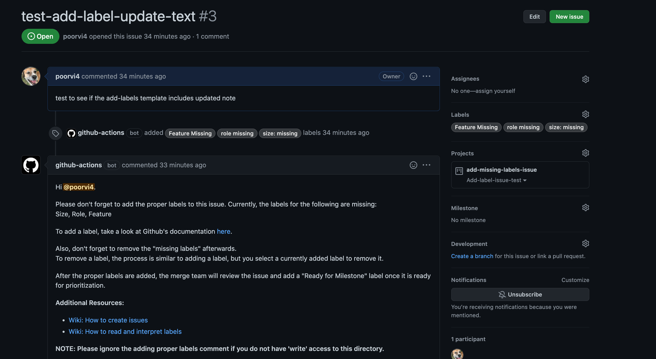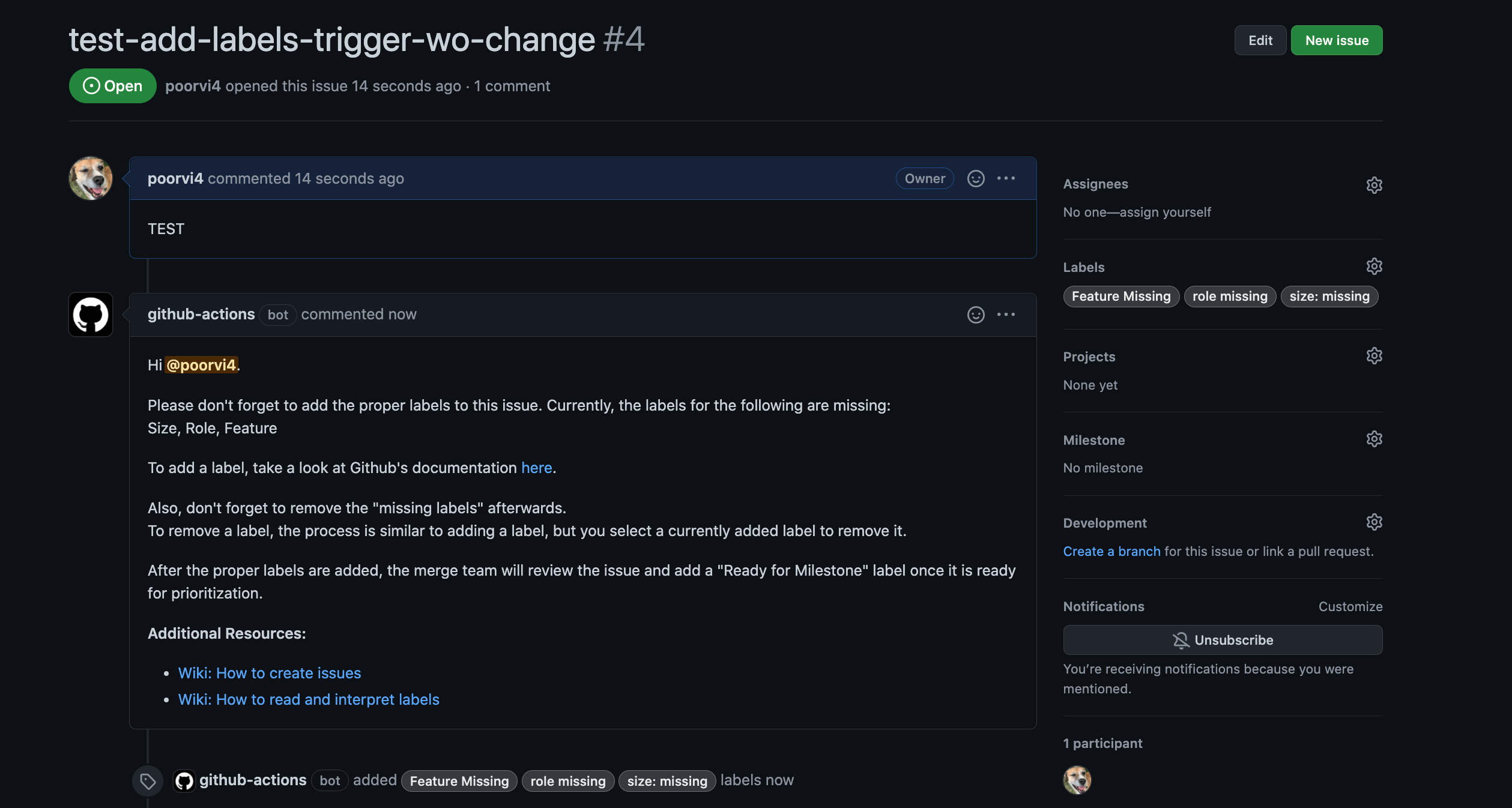 @poorvi4 Nice work adding this this update to the add labels trigger message. Everything looks good!