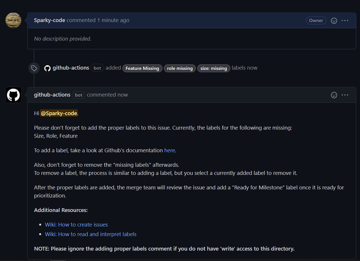 For added clarity, it might be better to move the note directly under the step that has to be ignored. If a user is follwing the driections step by step, they might spend time trying to figure out how to add a label before they notice it at the bottom. @SAUMILDHANKAR, do you have a preference?