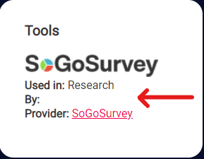 Branches look good. It is linked to the correct issue. The image has been renamed to so-go-survey and placed in the /assets/images/credits directory. A new folder was created in _data/internal/credits named tools and it contains the so-go-survey.yml file. The .yml file looks a little grumpy about there not being a newline at the end and thealt: ''on line 9 isn't in the original text from the linked issue but it looks like it was requested later on.