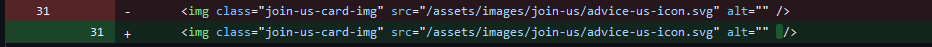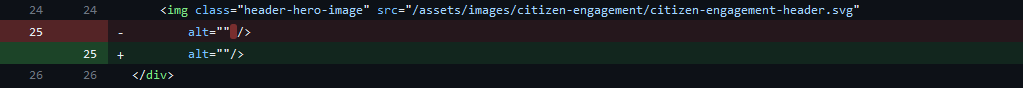 I do see that 2 lines have been changed that wasn't in the scope where you removed a space in header-hero alt for the citizen-engagement.html and added a space for the join-us.html alt and I don't see to do that in the linked issue.
