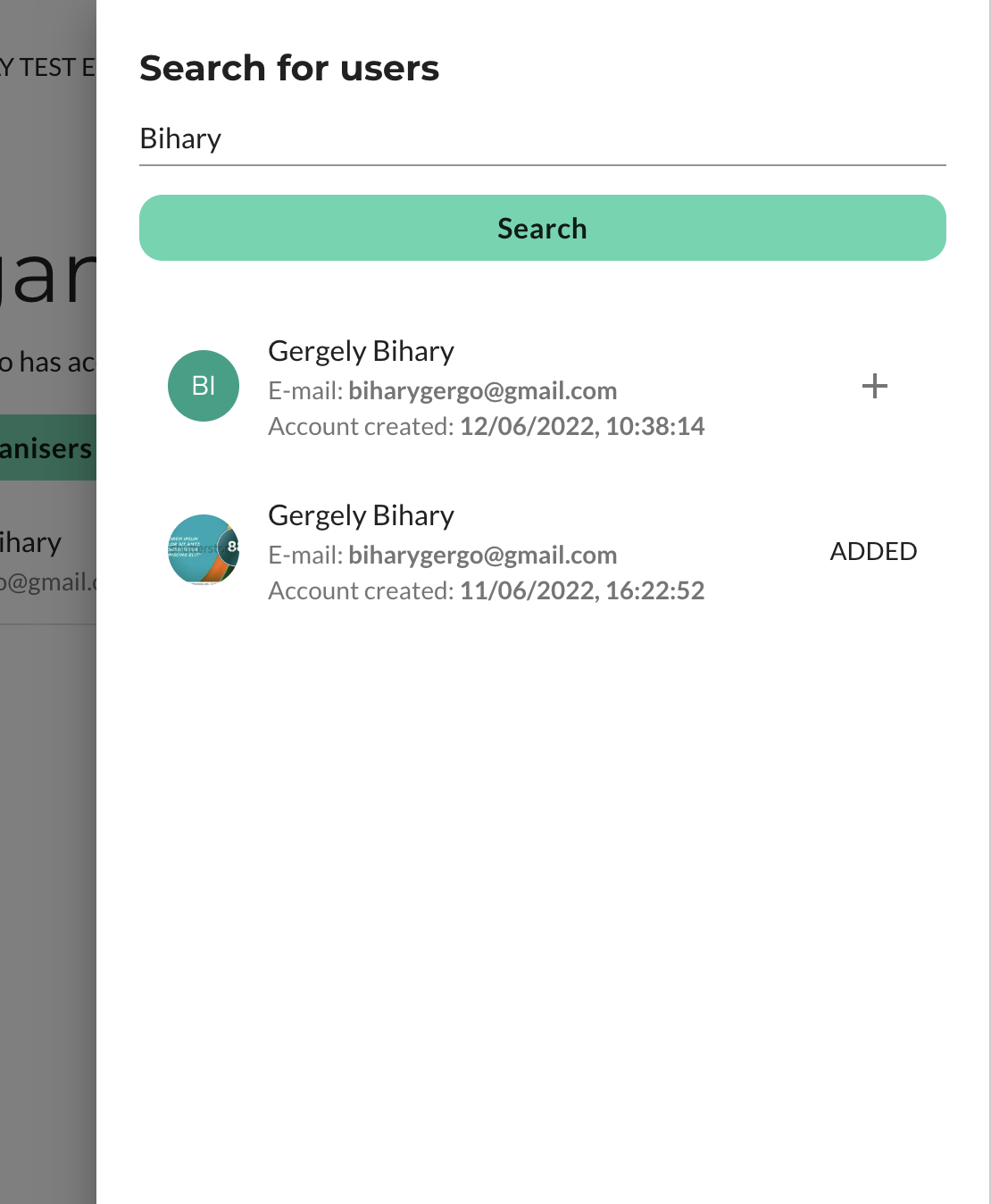 Small changes to the organiser invitation dialog so it's clearer how/what can be searched and the results are easier to distinguish. It's currently difficult to select the correct person to invite because multiple people could have the same name and the userID does not help non-technical users identify the correct user to add as an organiser.