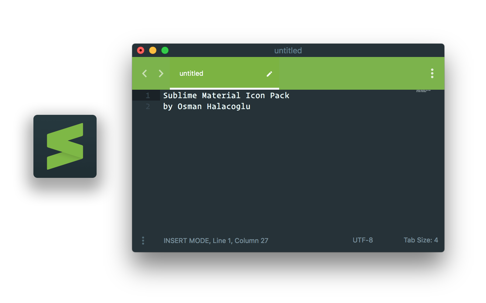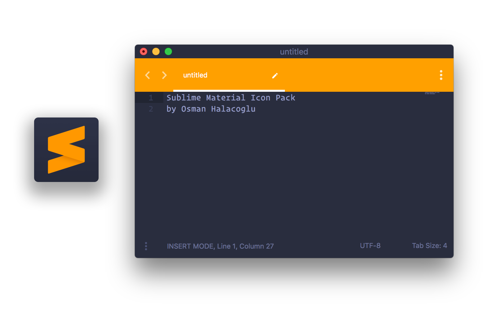Sublime Material Icon Pack is heavily inspired by, and fits very well the Material Theme for Sublime Text 3. It contains a total of 44 icons, with 4 different themes and 11 different accent colors for each. PNG files at 1024x1024 resolution, ICNS format for macOS up to 512x512 resolution and ICO format for Windows up to 256x256 resolution are included. For a more appealing look, installing the Material Theme Appbar addon is highly recommended.