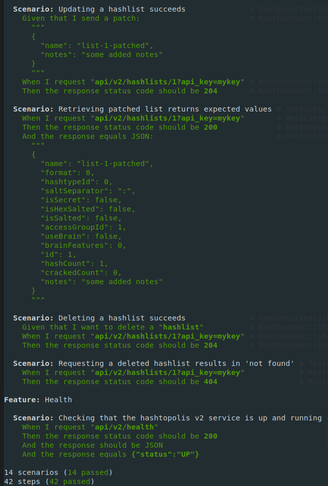 :8080/api/v2/*:8080/api/v2/explorer(pass a generated access key in the upper right):4200(requires setting the access key inconfiguration.ts)../../vendor/bin/behatinside directory/var/www/html/ci/apiv2in the Hashtopolis containerNote that there are still both implementation (e.g. clean setup code of tests, move Factory calls to Utils/Service, clean file importing), as wel as technical issues (e.g. caching in production mode, Swagger doc generation is iffy) to resolve. And perhaps other bugs (we would expand the tests and review everything in depth when we'd have an idea of way forward regarding implementation).