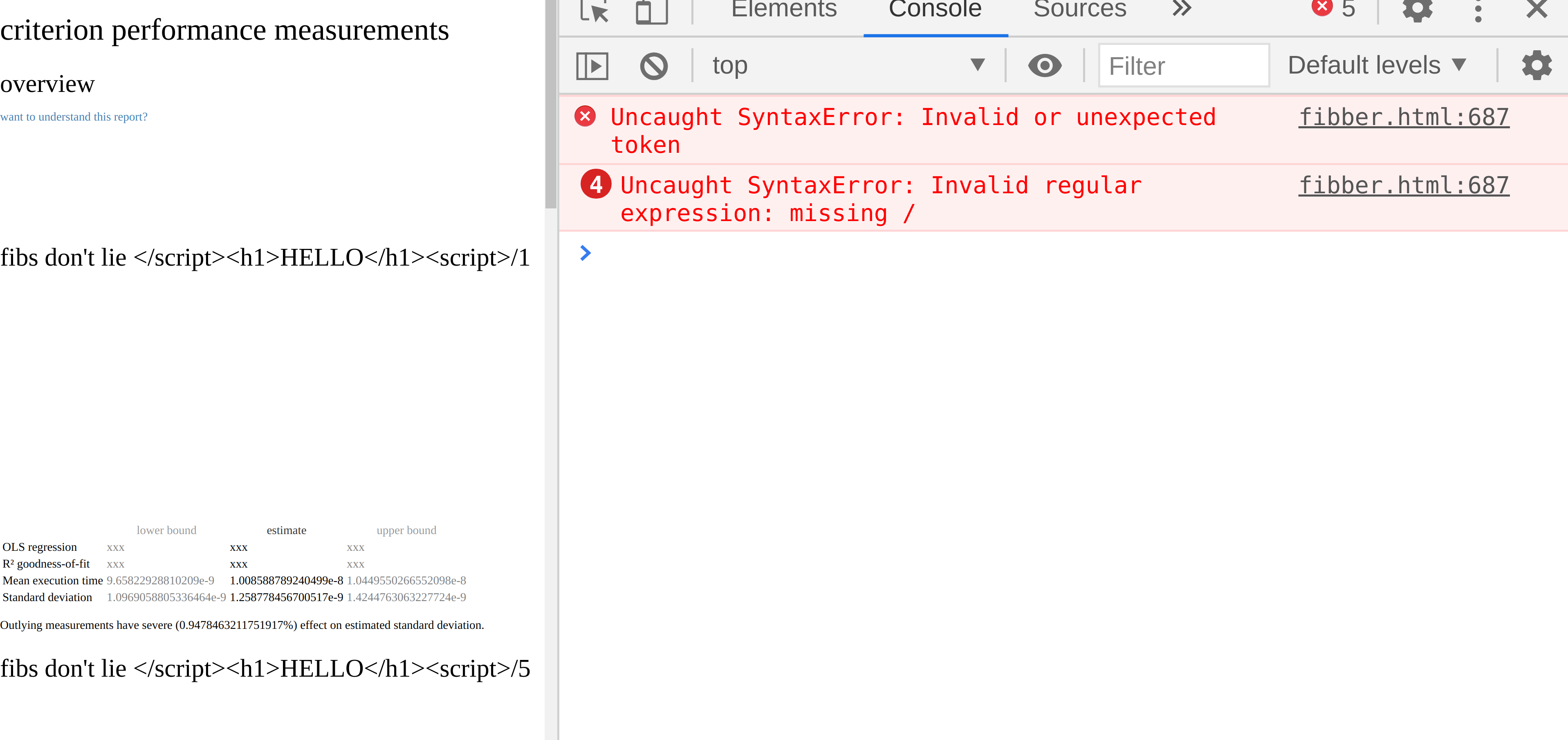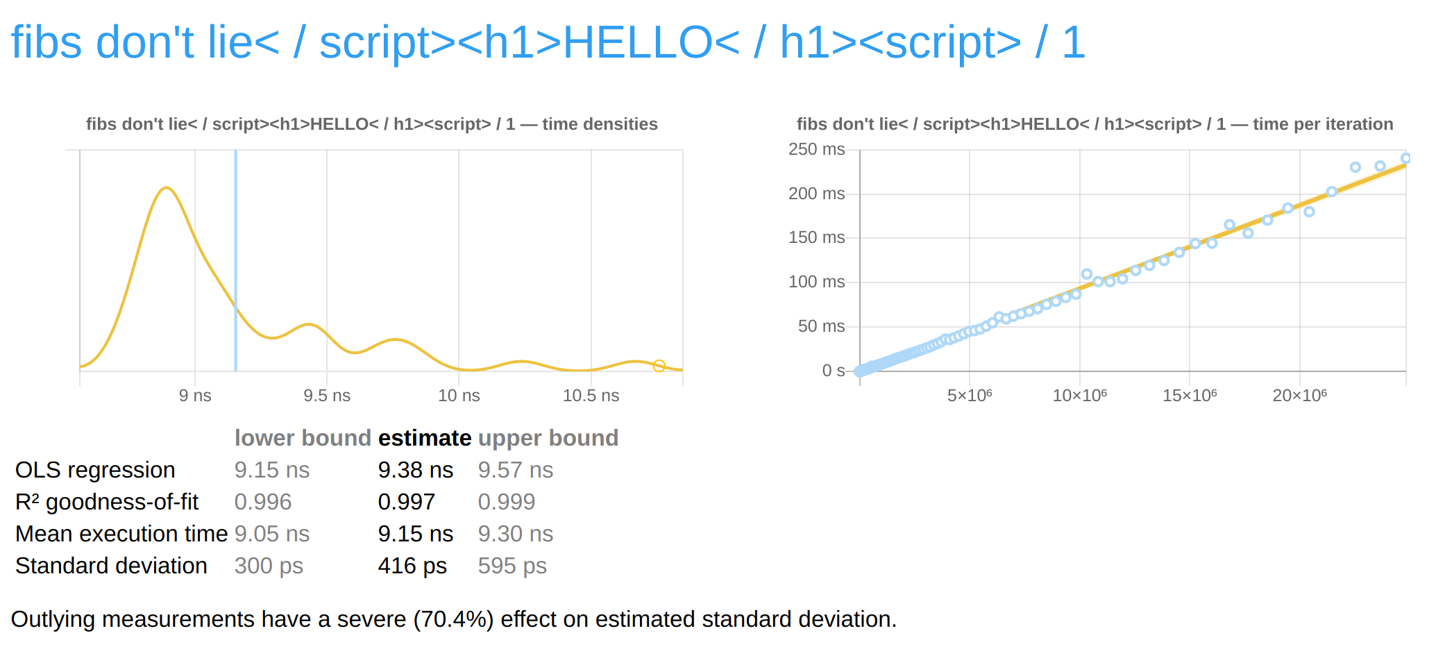 I've only tested with criterion-1.5.8.0 but I think it would be possible to inject HTML in previous versions as well. I'll test and see if it breaks in previous versions as well. EDIT: |