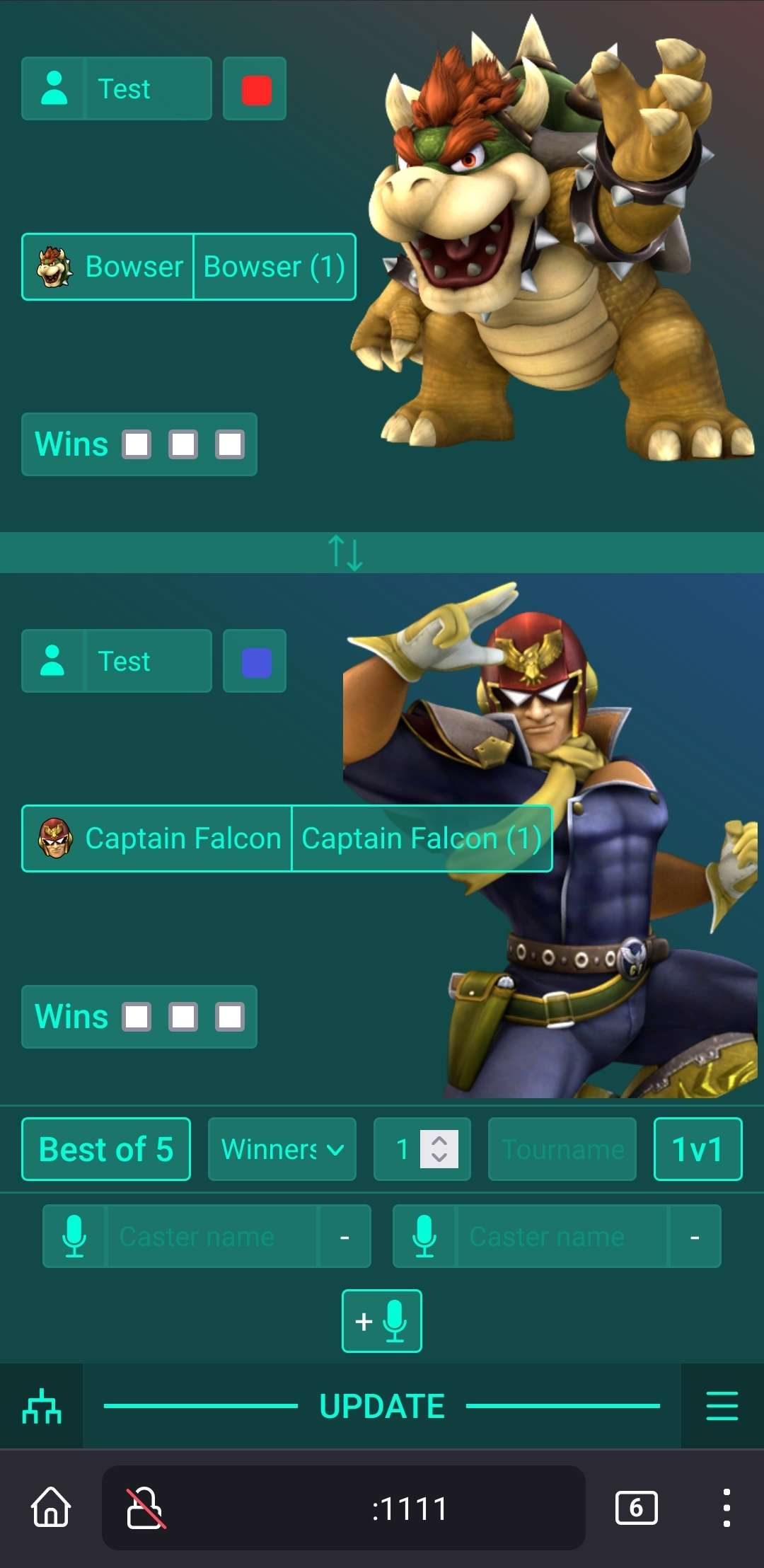 - Handy interface to quickly change everything you need, like player names, pronouns, characters, scores, round, casters...