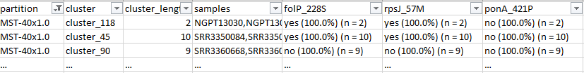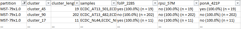 - Summary report for the genetic clusters of the lower level of stability (Table 2 of Pinto et al., 2021)