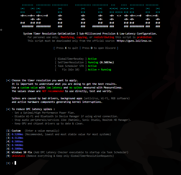 Configure and apply a custom system timer resolution via SetTimerResolution.exe to drastically reduce DPC latency and stabilize performance.