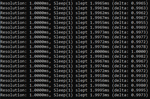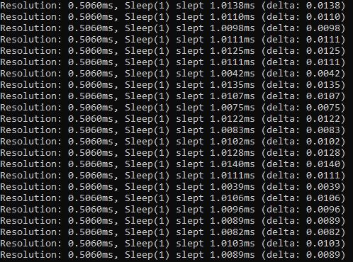 Resolution: 0.5086ms, Sleep(1) slept 1.0180ms (delta: 0.0180)