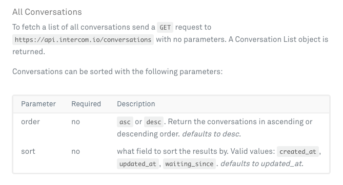 orderandsortparameters without anytypeparametertypeparameter is accepted by the API https://developers.intercom.com/reference#section-all-conversationsWill enable calls like this