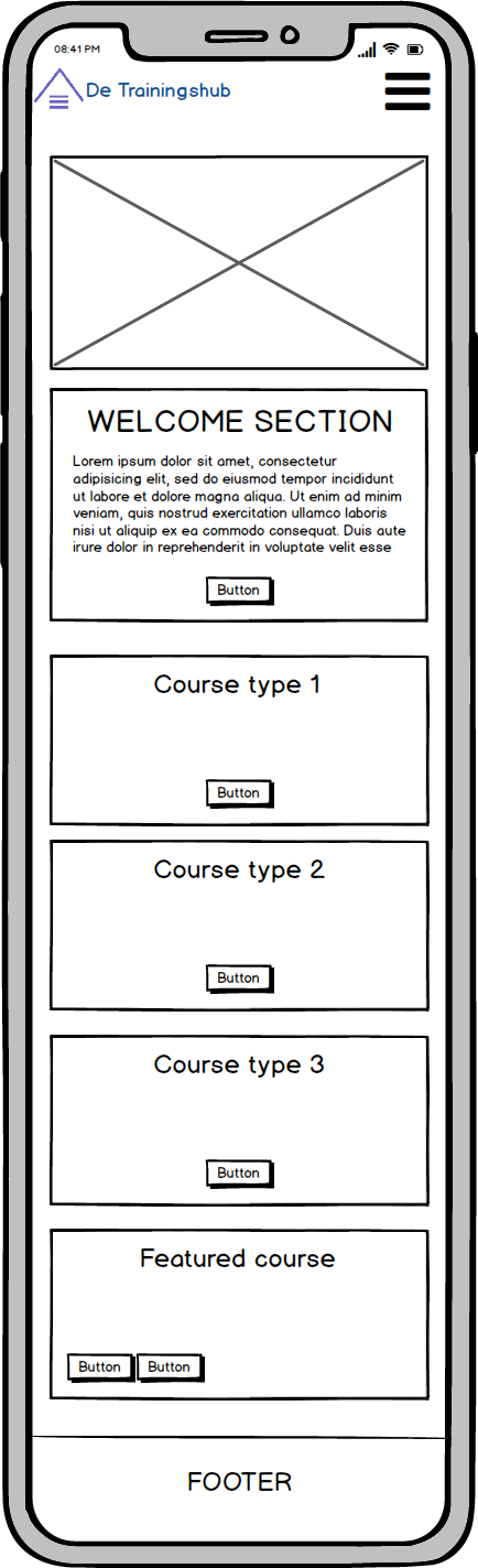 The design is card based and all the info should be on the screen an accesible at a glance. All the forms are in 1 card on a page. For the styling of the other pages I have created the wireframes below.