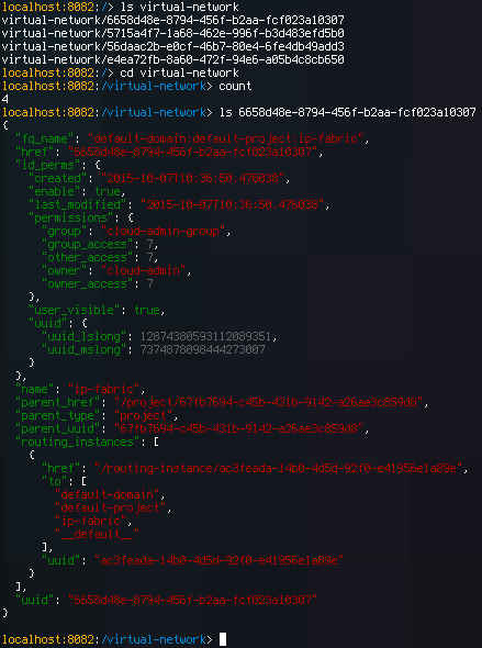 contrail-api-cli --host localhost:8095 --os-auth-plugin http --os-username admin --os-password contrail123 shell