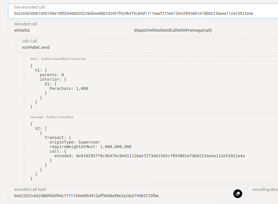 Note that the hash is for the whitelist_call instruction, not our actual proposal.