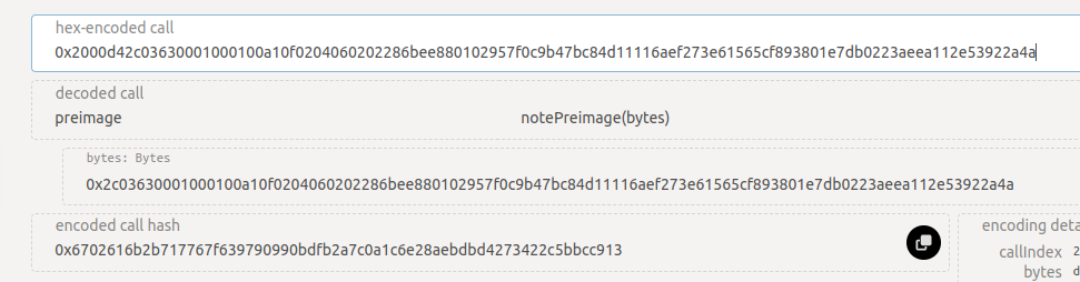 The first one just gives us some bytes wrapped in a note_preimage call: