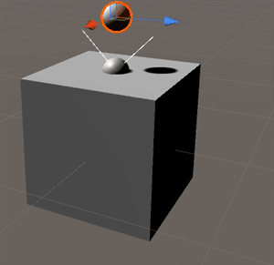 An example implementing a haptic probe, where the force on the effector of the haptic controller is equal to the linear and angular displacement of the green cube to the gray one.